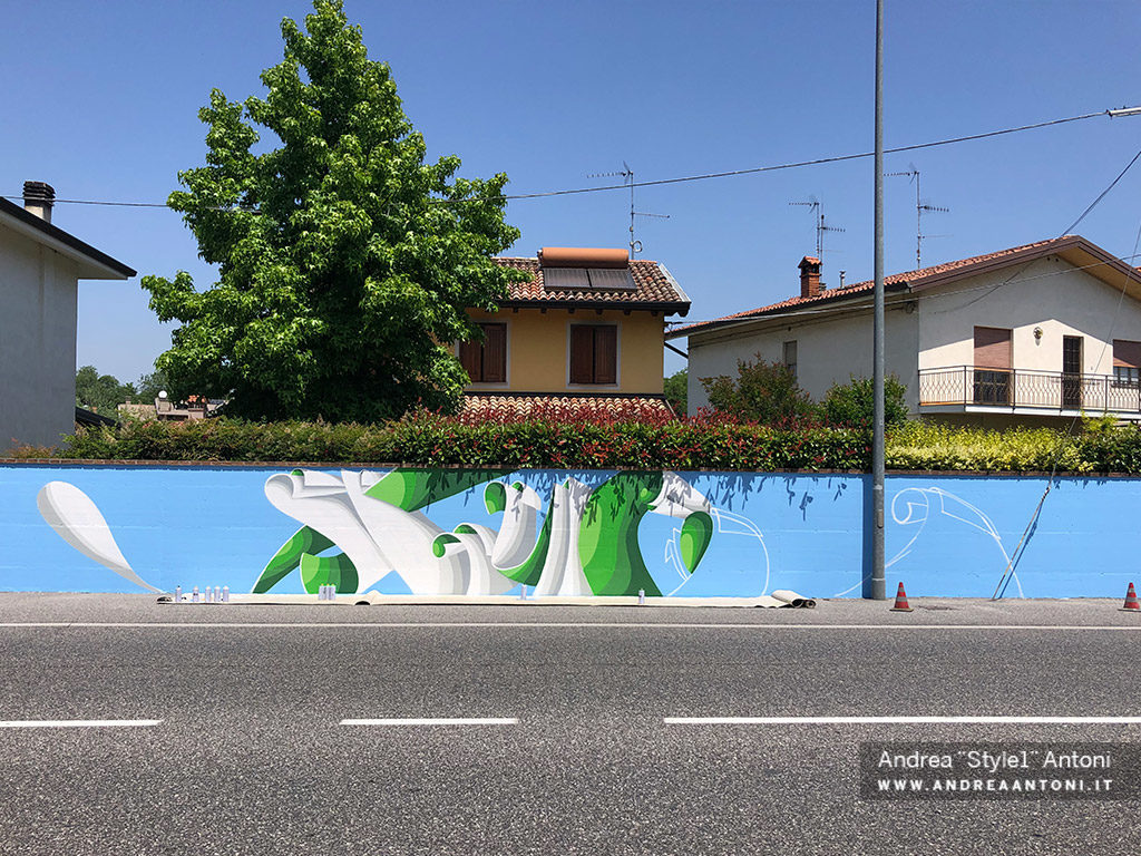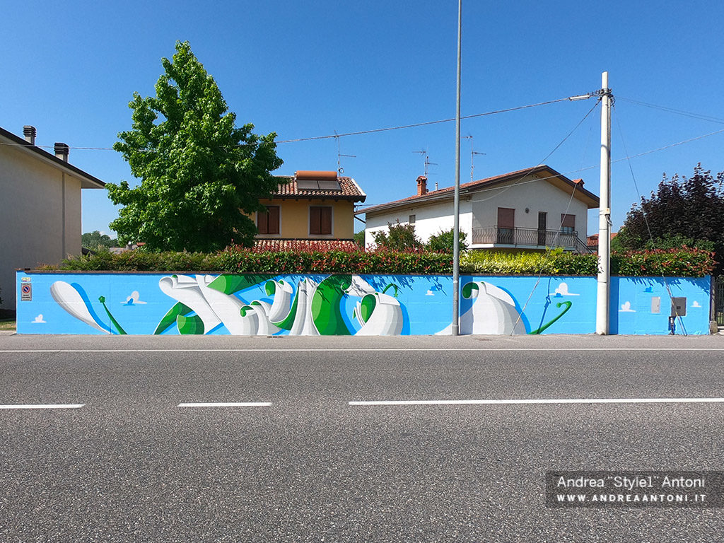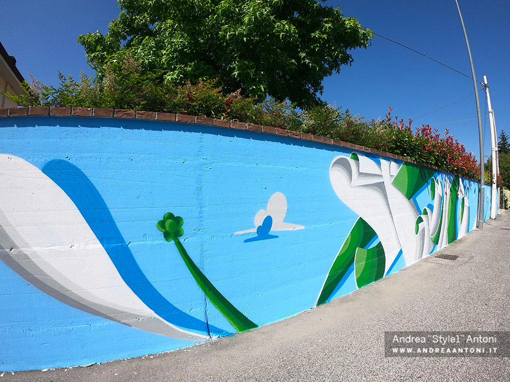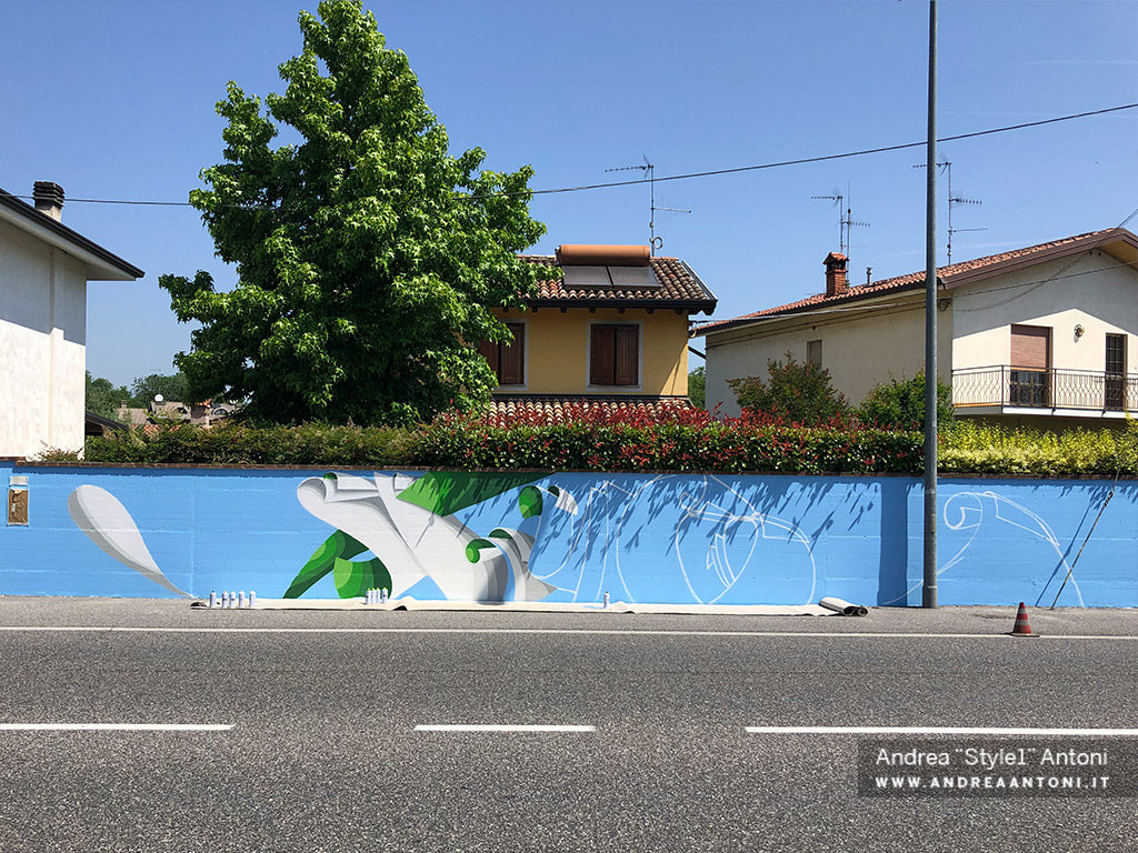 Ho avuto il piacere di realizzare un’opera su commissione di un privato, sulla parete perimetrale esterna, affacciata sulla visibilissima Strada Regionale 351 (a pochi metri dalla SME per chi conosce la zona).