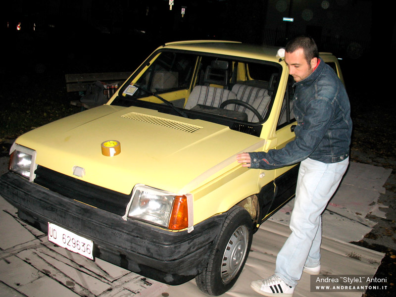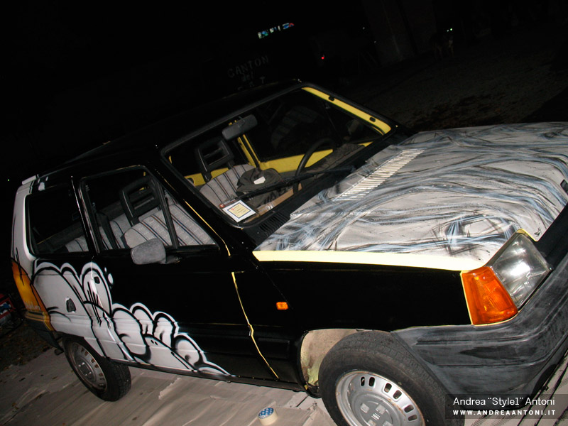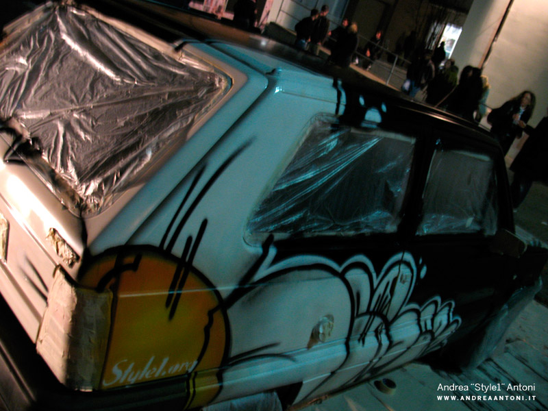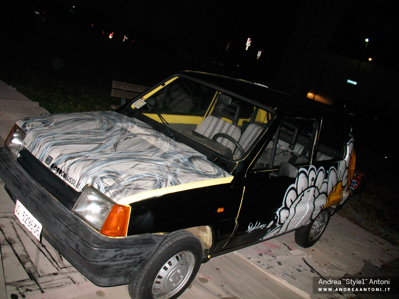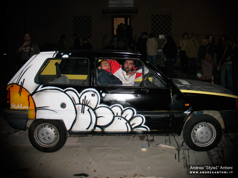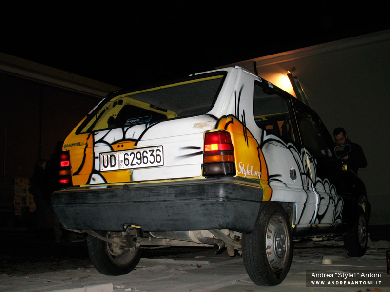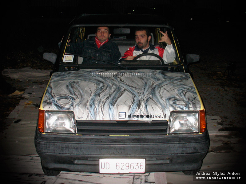 In occasione dell’inaugurazione del CAG di Monfalcone, io e Diego “Sly” Colussi siamo stati invitati a customizzare la macchina di uno dei due operatori del Centro Giovani.
