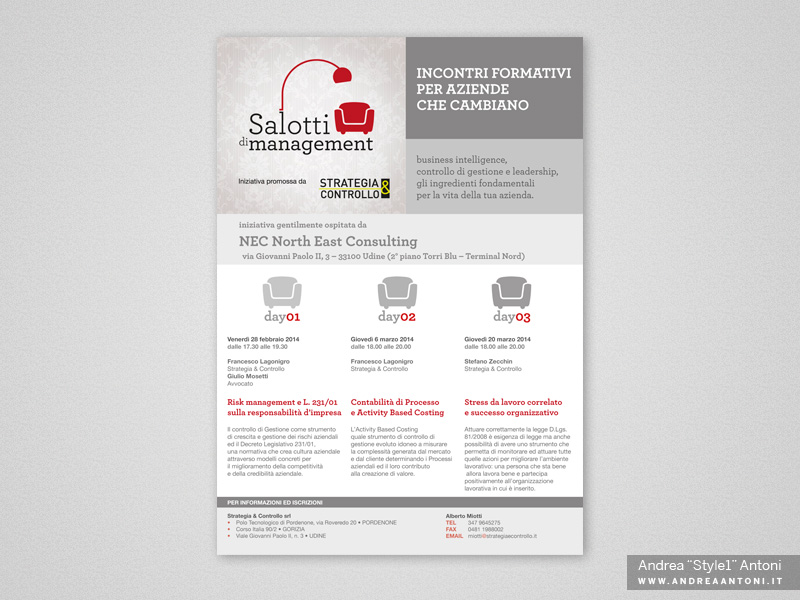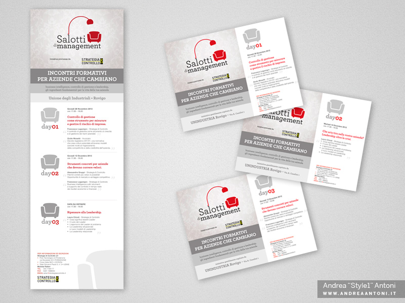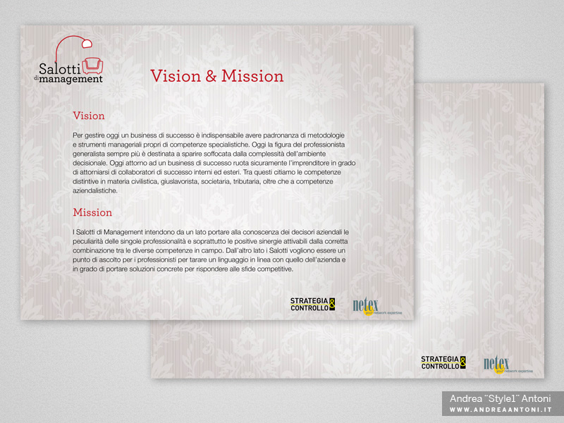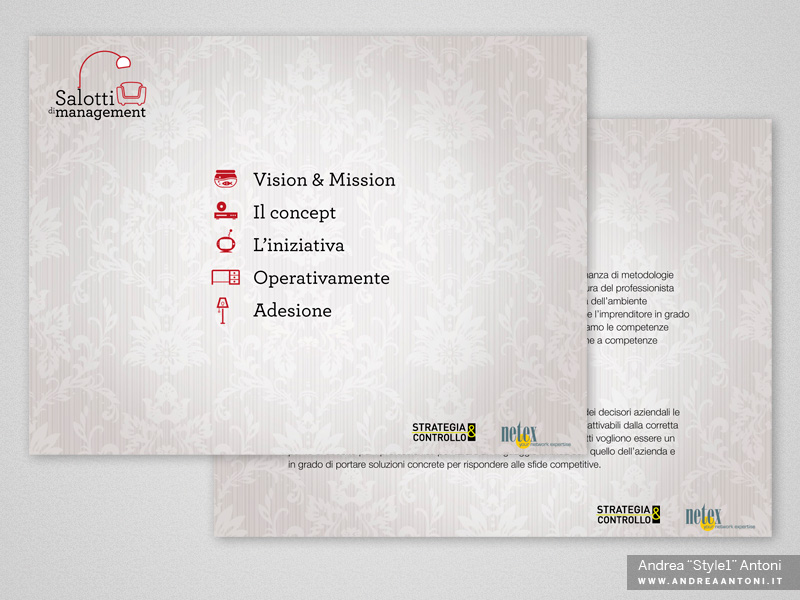 Realizzazione del logo e dell’immagine coordinata per “Salotti di Management”, ciclo di incontri di gruppo tra decisori aziendali (imprenditori/manager) o professionisti con competenze distintive specifiche in varie materie.
