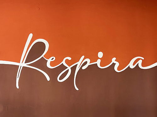 Committente: Miky YogaDove: Studio Yoga”YOGINI”, Monfalcone (GO)Quando: agosto 2025. Realizzazione di graffito calligrafico, a mano libera.Pennelli + acrilici….