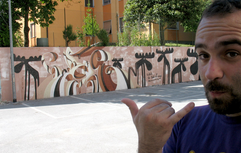 Comunque ogni tanto dipingo ancora, vorrei ben vedere, ed è il caso di questo fine settimana, durante il quale ho fatto questa sorta di “tributo” ad Heidi Lange, un’artista svedese di cui ho conosciuto le opere lo scorso anno, quando sono stato a Stoccolma. Se andate in Svezia infatti è quasi impossibile non imbattersi nelle sue renne (o alci? boh) riprodotte su qualsiasi oggetto: e ora le trovate anche su muro. Però non in Svezia, ma a Monfalcone.