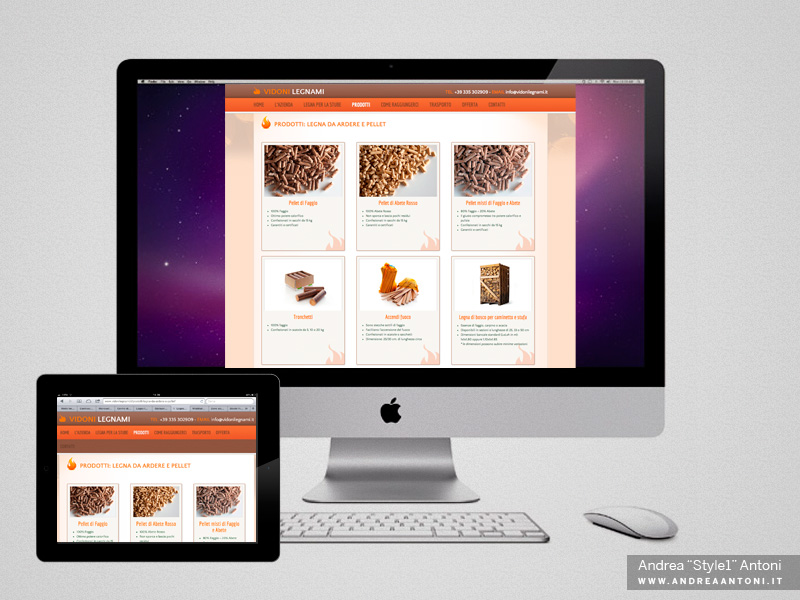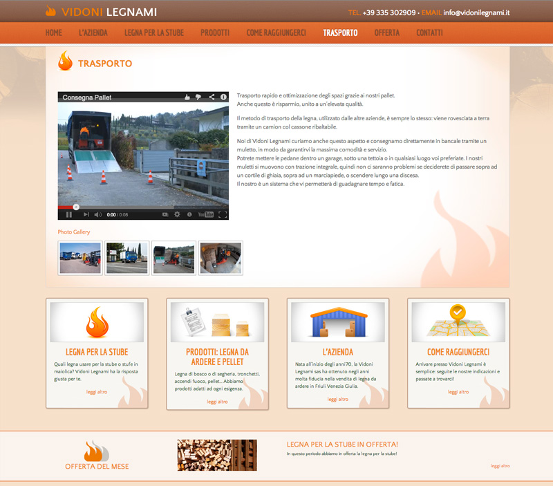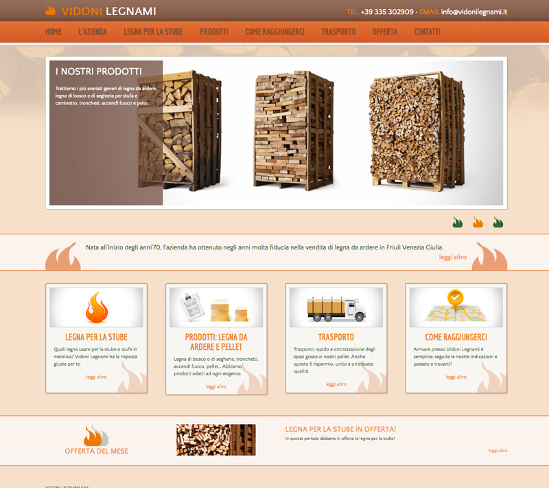 Realizzazione del sito internet responsivo per Vidoni Legnami, azienda specializzata nella vendita e consegna di legna per la stube e legna da ardere in genere, di San Giovanni al Natisone (UD).Realizzazione sito by B42.